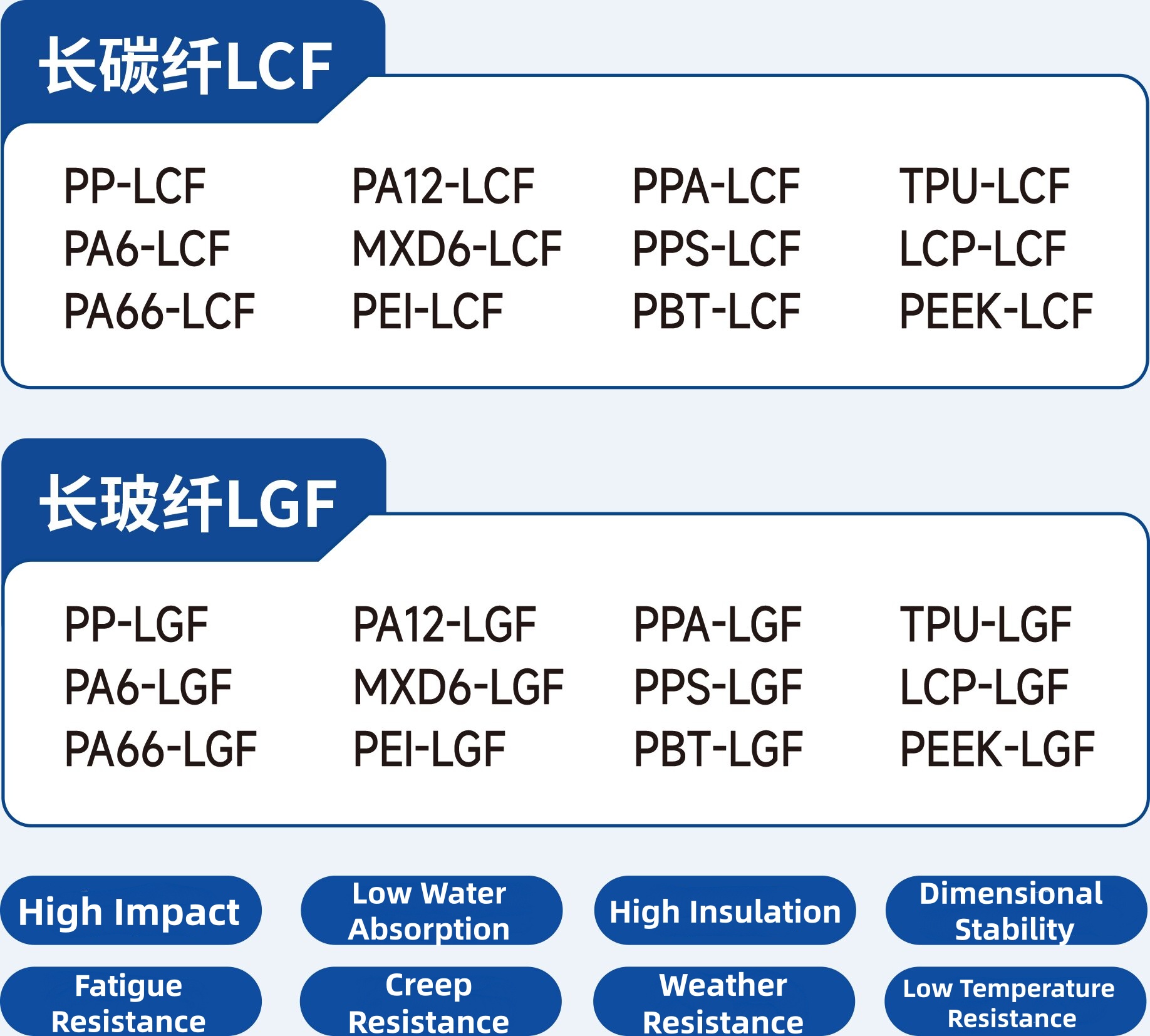 Compared to traditional thermoset composites and metals, LFT has become an ideal metal alternative due to its excellent mechanical properties, offering significant weight reduction while delivering optimal performance in reinforced thermoplastics.